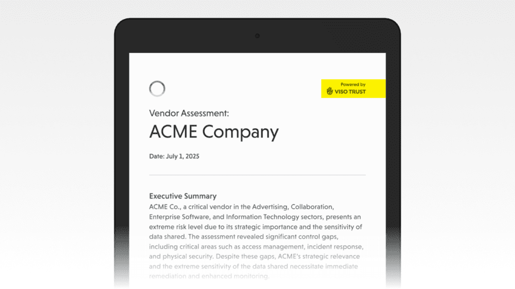 VISO TRUST connects with the systems you already use, so reporting pulls directly from live assessments, monitoring signals, and vendor workflows. Generate and share risk metrics in the same tools where your teams track work.